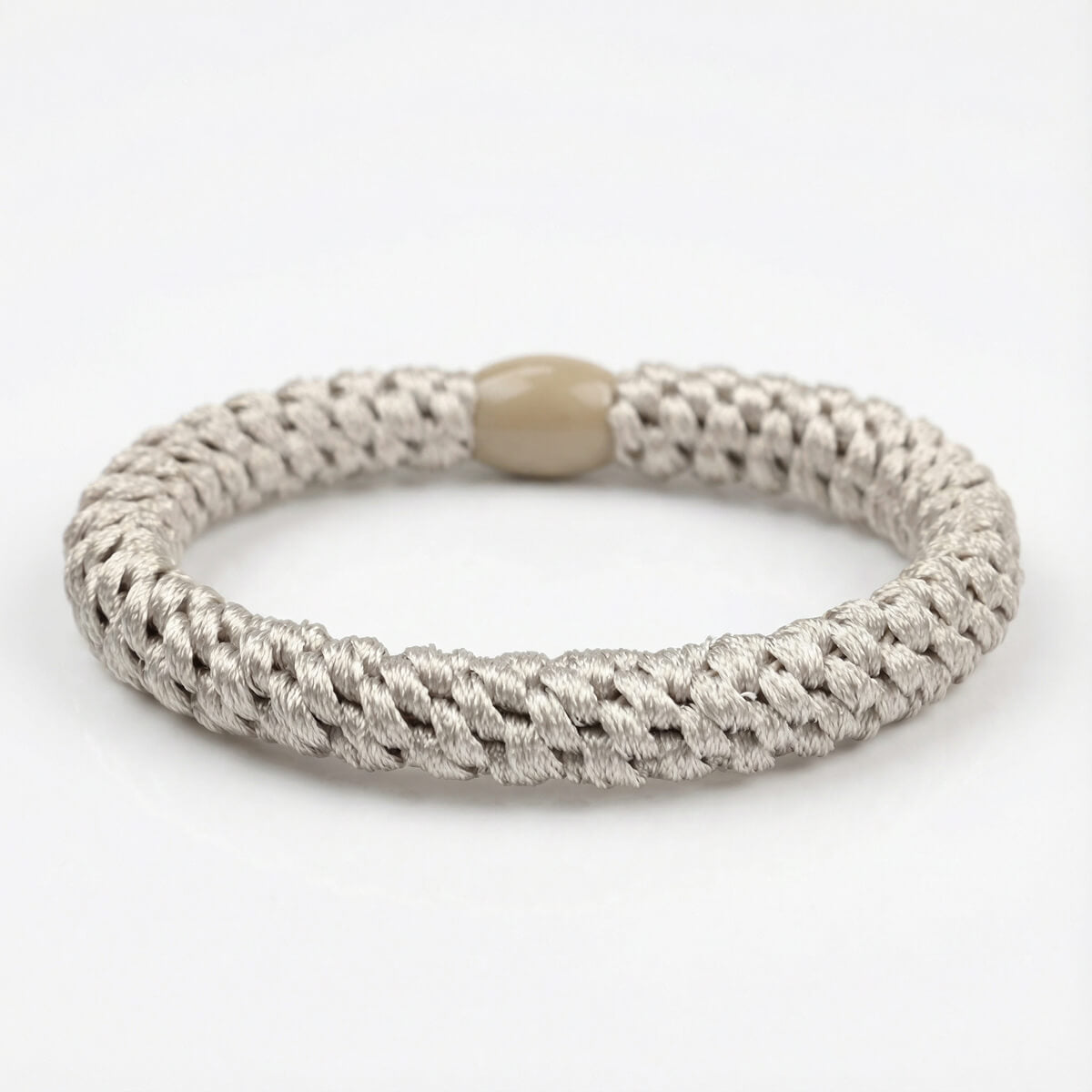 En mjuk och elastisk beige hårsnodd från Poppie som håller frisyren på plats utan att slita på hår eller hud. Skonsam, bekväm och perfekt för vardagens alla looks.