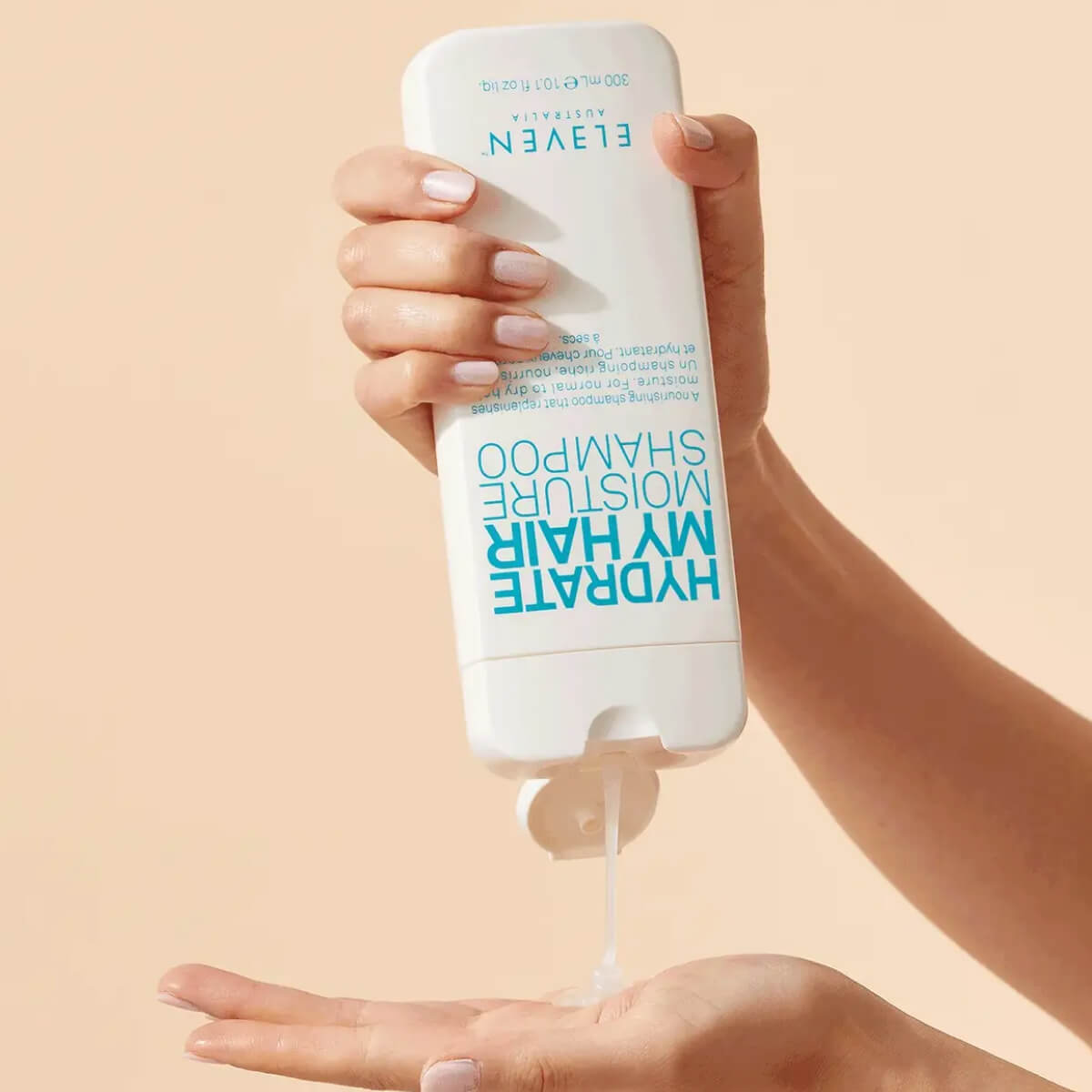 Steg 1: Applicera Eleven Australia Hydrate My Hair Shampoo i vått hår och massera försiktigt in i hår och hårbotten för att rengöra och återfukta.