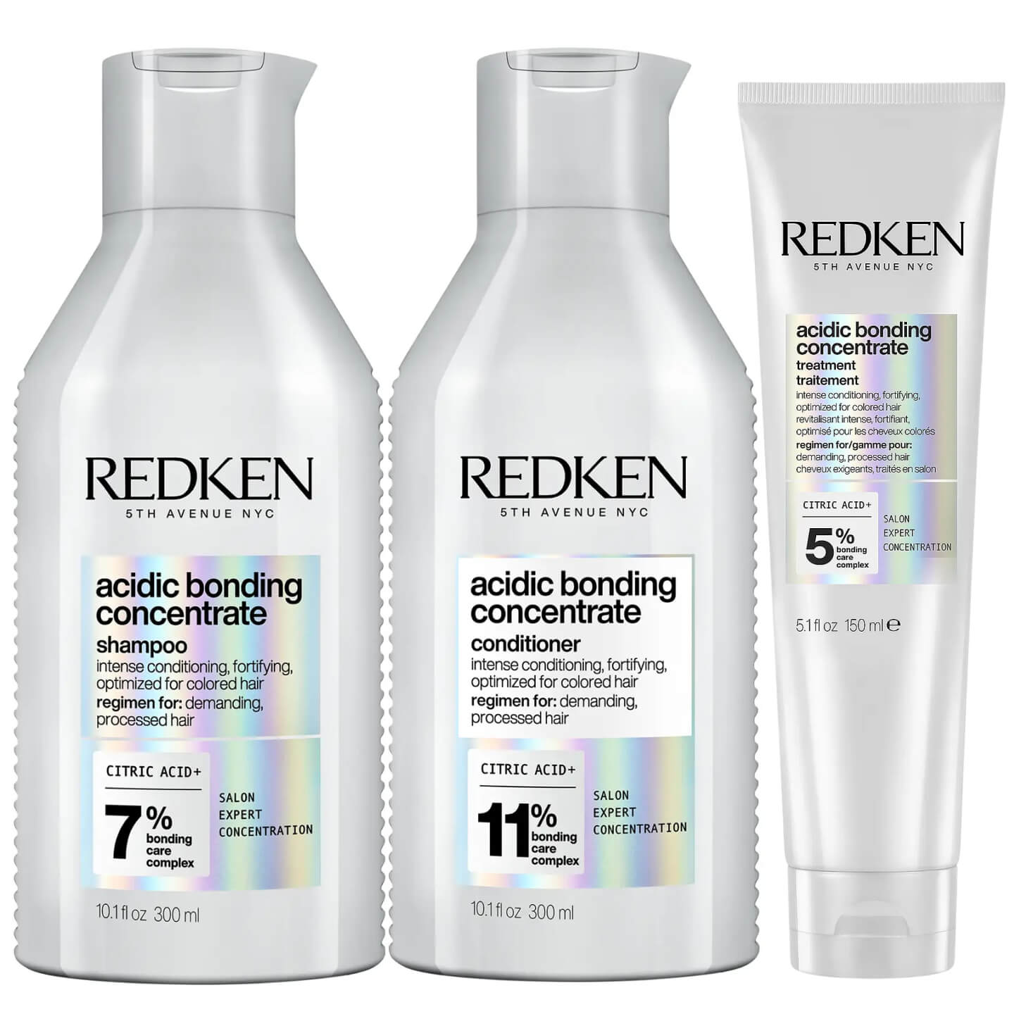 En komplett reparerande trio för skadat, kemiskt behandlat och värmestylingat hår. Denna kraftfulla trio kombinerar tre steg i en holistisk hårvårdsrutin: schampo, conditioner och leave-in treatment från Redken Acidic Bonding Concentrate-serien.
