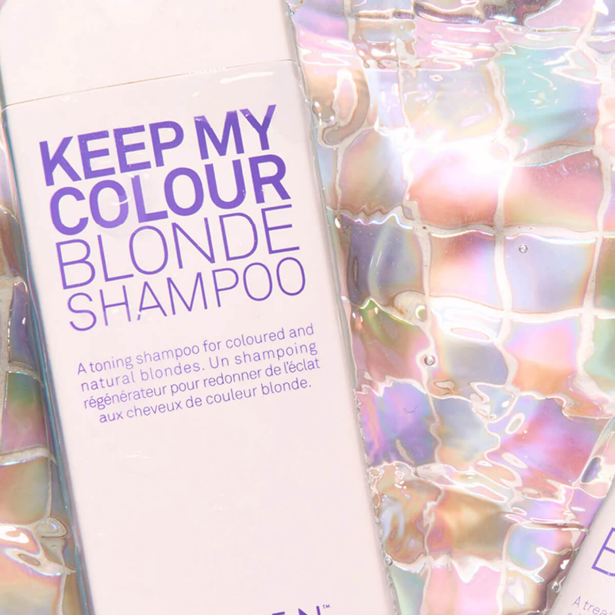 Eleven Australia Keep My Colour Blonde Shampoo ett schampo speciellt framtaget för alla blonda hår, naturliga eller inte. En blå bas motverkar gula toner och förstärker blonda toner, samtidigt som det tack vare proteiner från soja och vete hjälper till att stärka och skydda håret. Detta näringsrika schampo är ett måste som vill ha de kalla tonerna likt en ikonisk Australiensisk blondin!Tips från stylisten: För det perfekta resultatet för dig som blond, se till att komplettera med ett balsam som passar din hårtyp.Fördelar: Anti-fade & färgbevarande. Förpackning av återvinningsbart material. Parabenfri.